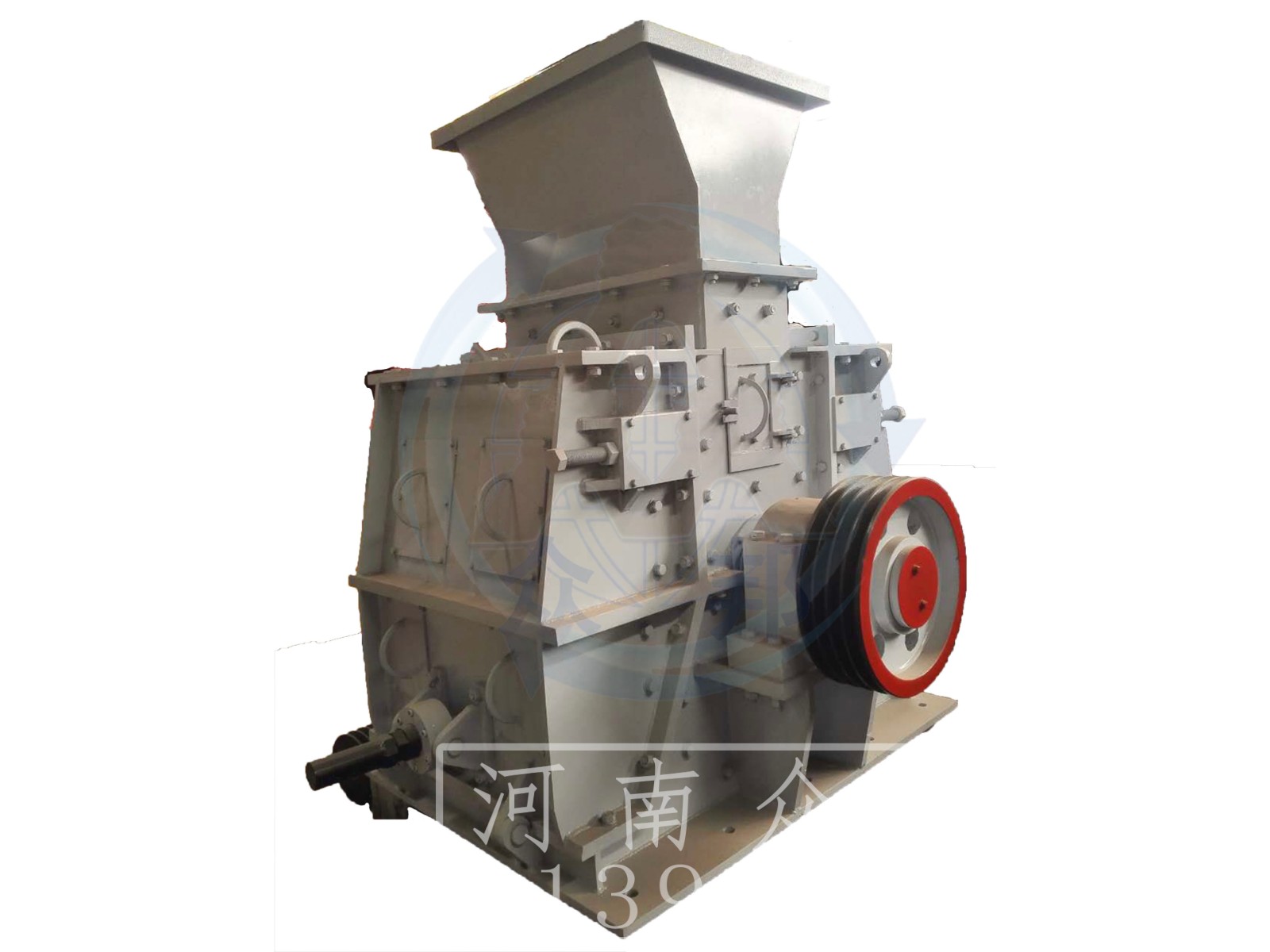 環(huán)錘式破碎機(jī)的工作部件為帶有錘子(又稱錘頭)的轉(zhuǎn)子。轉(zhuǎn)子由主軸、圓盤、銷軸和錘子組成。電動(dòng)機(jī)帶動(dòng)轉(zhuǎn)子在破碎腔內(nèi)高速旋轉(zhuǎn)。物料自上部給料口給入機(jī)內(nèi),受高速運(yùn)動(dòng)的錘子的打擊、沖擊、剪切、研磨作用而粉碎。在轉(zhuǎn)子下部,設(shè)有篩板、粉碎物料中小于篩孔尺寸的粒級 通過篩板排出,大于篩孔尺寸的粗粒級 阻留在篩板上繼續(xù)受到錘子的打擊和研磨,通過篩板排出。